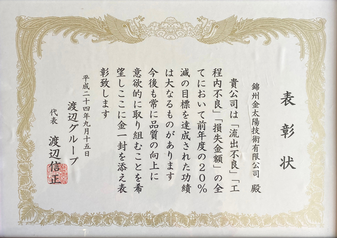 錦州金太陽技術有限公司は、株式會社渡辺製作所によって2001年8月に中國に設立された板金の設計?加工、技術サービスを従事する子會社です。